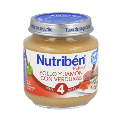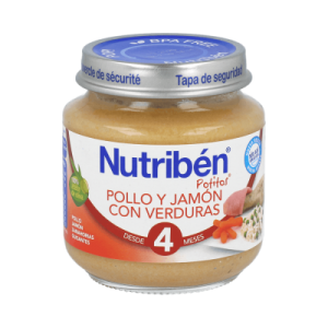 Nutribén pollo jamón verduras es un potito completo que ofrece la mejor alimentación para bebés que tu hijo necesita. Siguiendo una receta gourmet, tus bebés conseguirán aportar a su cuerpo energías, minerales y vitaminas. Conseguirán llegar enérgicos al final del día.