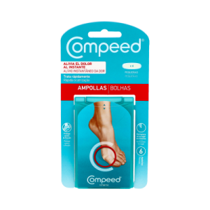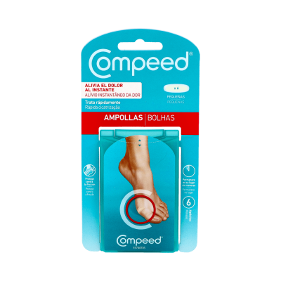 Compeed Ampollas Pequeñas 6uds son apósitos hidrocoloides para pequeñas ampollas, como las que aparecen en los dedos de los pies.