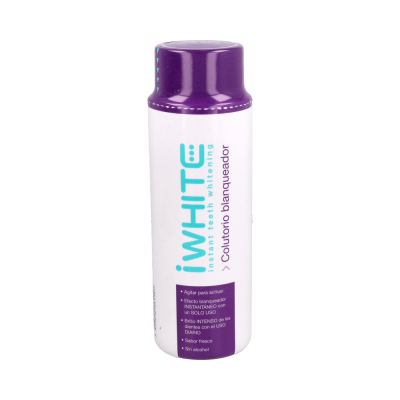 El colutorio de Iwhite es una solución blanqueadora que te proporcionará la máxima protección ante la aparición de manchas en los dientes gracias a su sustancia PAP y su fórmula Covarinne blue.