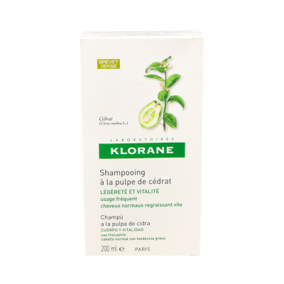 Klorane Champú a la Cidra 200 ml tiene una composición a base de pulpa cidra ofrece una inigualable nutrición a tu cabello. La pulpa de cidra se caracteriza porque aporta y refuerza el brillo natural de tu pelo, con unos resultados rápidos y notables.