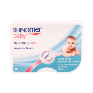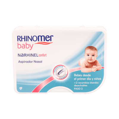 Narhinel Confort aspirador nasal es un aparato que te permitirá mantener la nariz de tu bebé libre de mucosidades. Es muy común que durante los primeros meses tengan dificultades para respirar por la boca por lo que es importante mantener sus fosas nasales despejadas. Posee una forma ergonómica para facilitar su uso y no lastimar la nariz del bebé. Además sus recambios son filtros absorbentes flexibles y suaves que hacen que esta limpieza sea higiénica y segura. Ayuda a tu bebé a respirar mejor utilizando el método Rhinomer.