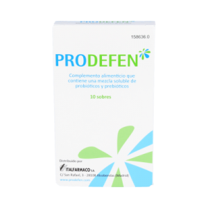 Italfarmaco Prodefen 10 sobres es un complemento alimenticio natural rico en fructooligosacáridos y cepas de microorganismos. Ayuda a regular la flora y tránsito intestinal y refuerza el sistema inmunitario.