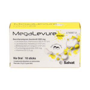 MegaLevure 10 Sticks es un complemento alimenticio hecho a partir de una combinación de probióticos y prebióticos que reequilibran la flora intestinal natural para acabar con las molestias.