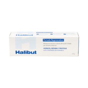 Halibut Pomada Regeneradora 45gr es una pomada que incrementa la síntesis del colágeno en la piel y colabora en el proceso de cicatrización.