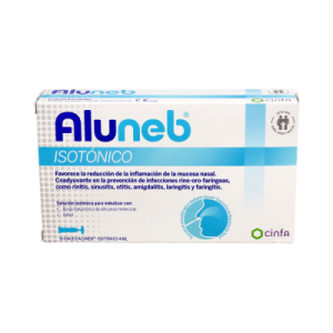 Aluneb Isotónico 15x4ml es una solución para la nebulización indicada para la restauración y mantenimiento de las condiciones fisiológicas de la mucosa rino-oro faríngea.