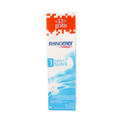 Nebulizador con agua de mar isotónica y estéril con una fuerza ligera. Rhinomer F1 ayuda a descongestionar las fosas nasales, las mantiene limpias y las humidifica. Contribuye de forma activa a la higiene y liberación de las fosas nasales en caso de resfriados y alergias. Elaborado con agua de mar isotónica 100% natural.