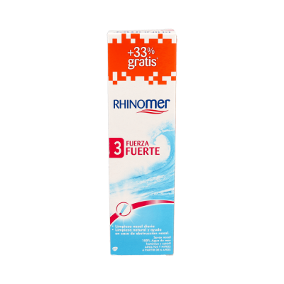 Rhinomer Fuerza 3 180ml es un spray nasal 100% natural de agua de mar isotónica y estéril, con minerales y oligoelementos marinos, que facilita la limpieza nasal diaria, eliminando las impurezas, hidratando y aliviando la congestión.