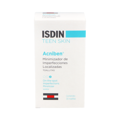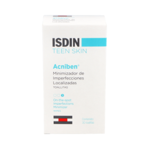 ISDIN Teen Skin Acniben 3 On the Go Minimizador de Imperfecciones 30uds son toallitas que ayudan a limpiar y purificar las pieles grasas o acneicas en cualquier momento.