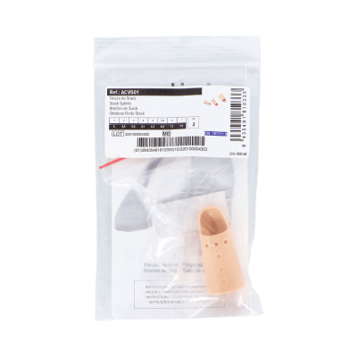 Férula rígida digital en color beige, que está especialmente ideadas para la inmovilización de la falange. No contiene látex, y está fabricada con unos orificios para permitir la ventilación y que no se acumule el sudor en su interior. La parte inferior abarca desde la zona distal del dedo hasta sobrepasar la articulacio?n interfala?ngica distal, y la parte superior deja libre la zona de la un?a y llega hasta la articulacio?n interfala?ngica distal.