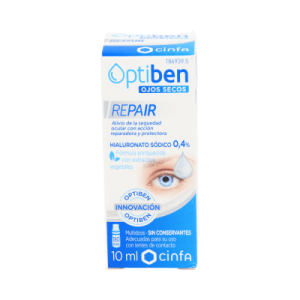Optiben Ojos Secos Repair 10ml es un colirio que ayuda a lubricar y refrescar el ojo en caso de sequedad o irritación por factores medioambientales.