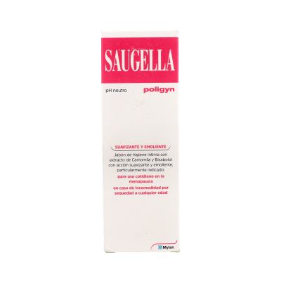 Saugella Poligyn pH7 se trata de un jabón íntimo diario especialmente diseñado para las mujeres con menopausia. Su composición rica en camomila permite un alivio y frescor al instante y disminuye las irritaciones provocadas por el prurito vulvar.