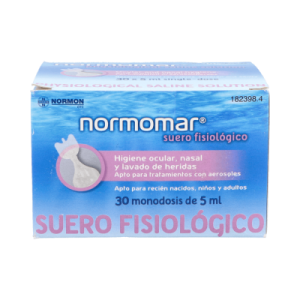 Solución fisiológica especialmente formulada para irrigación y lavado nasal o auditivo. Es adecuada para la higiene de heridas y quemaduras, para la limpieza de las mucosas y lagrimales de los ojos. Elaborada con cloruro de sodio al 0,9% y agua purificada, que no generan irritaciones ni desequilibrios hídricos en la piel. Puede emplearse para enjuagar los catéteres de vejiga, limpieza del instrumental y para inhalación en aerosol terapia. Se presenta en 30 envases estériles monodosis. Apta para bebés, niños y adultos.