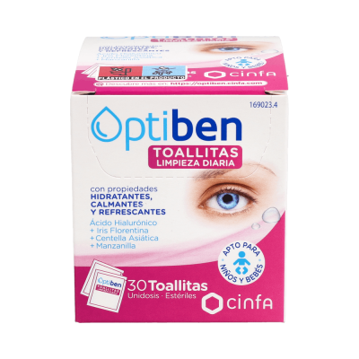 Optiben Toallitas Unidosis 30uds son toallitas que ayudan a limpiar párpados y pestañas de impurezas o partículas externas e hidratar la zona.