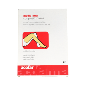 La media larga A-F de compresión normal de Acofar es un tratamiento terapéutico que te ayudará a activar tu circulación sanguínea para evitar la presadez o dolor en las piernas. Ideal para mujeres con problemas de varices o mujeres que pasan mucho tiempo de pie o sentadas en sus trabajos.