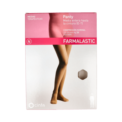 Farmalastic Panty-Media hasta la cintura (E-T) compresión normal T-mediana beige son unos pantys de compresión que ayudan a aliviar la sensación de dolor y pesadez en las piernas sobre todo, después de una larga jornada laboral, largos viajes y de empleos en los que hay que estar mucho tiempo sentados.Indicada para aquellas personas con problemas circulatorios, varices, hinchazón o que por su trabajo permanecen de pie largos periodos de tiempo.Ofrece una acción relajante frente a la sensación de fatiga y dolor en las piernas, así como problemas de varices. Se trata de un panty de compresión hasta la cintura.*La T-mediana tiene aproximadamente un contorno de pantorrilla de 37-39 cm y de tobillo 24-25 cm. En caso de duda entre dos tallas, utilizar siempre la mayor. *Por motivos de higiene, no se aceptarán cambios ni devoluciones de este producto.