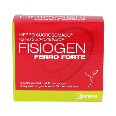 Fisiogen Ferro Forte 30 sobres es un complemento alimenticio soluble que contiene pirofosfato férrico liposomado, un componente que ayuda a aumentar los niveles de hierro. Es, por lo tanto, adecuado para personas bajas de hierro y contribuye a evitar la anemia por ejemplo en adolescentes, mujeres de edad fértil o durante el sangrado menstrual.