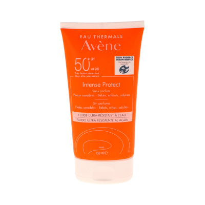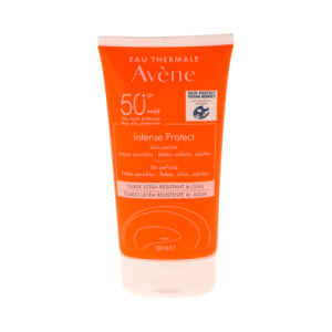 Avène Intense Protect SPF50+ 150ml es una crema protectora solar con factor SPF50+, en formato fluido ultra resistente al agua, para la cara y el cuerpo y apto para toda la familia.