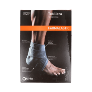 La tobillera neopreno de Farmalastic ayuda a curar lesiones de las articulaciones como esguinces, torceduras y caídas. El neopreno permite una doble función de inmovilización y calor. Tiene una densidad de 3 mm de espesor y un forro interior hipoalergénico que además absorbe el sudor. Los bordes del neopreno están remallados para aumentar su resistencia y longevidad. Su elasticidad evita el efecto torniquete.